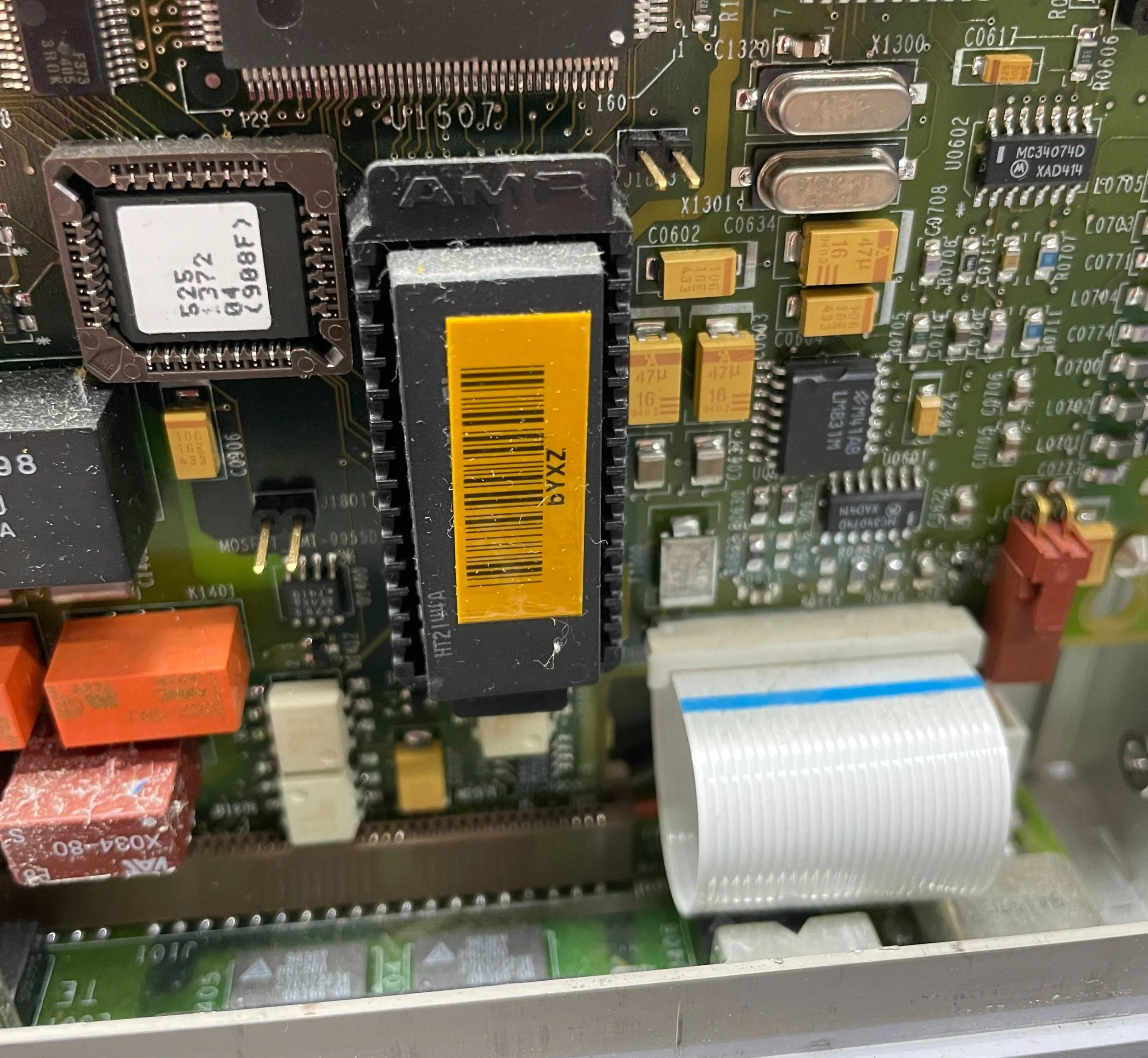 Once the new capacitors arrived, I carefully removed the old surface-mount caps and replaced them with the new ones. Powering the system back up resulted in a significantly improved image, although some issues remained. I left the machine running for a few hours, but upon returning, the screen had deteriorated further. Unfortunately, I couldn’t get it to work correctly again, and it would consistently go to bright white shortly after booting, with a distorted image fading into white. In addition, it now had the telltale pixel lines that eventually appear on all Voyagers.