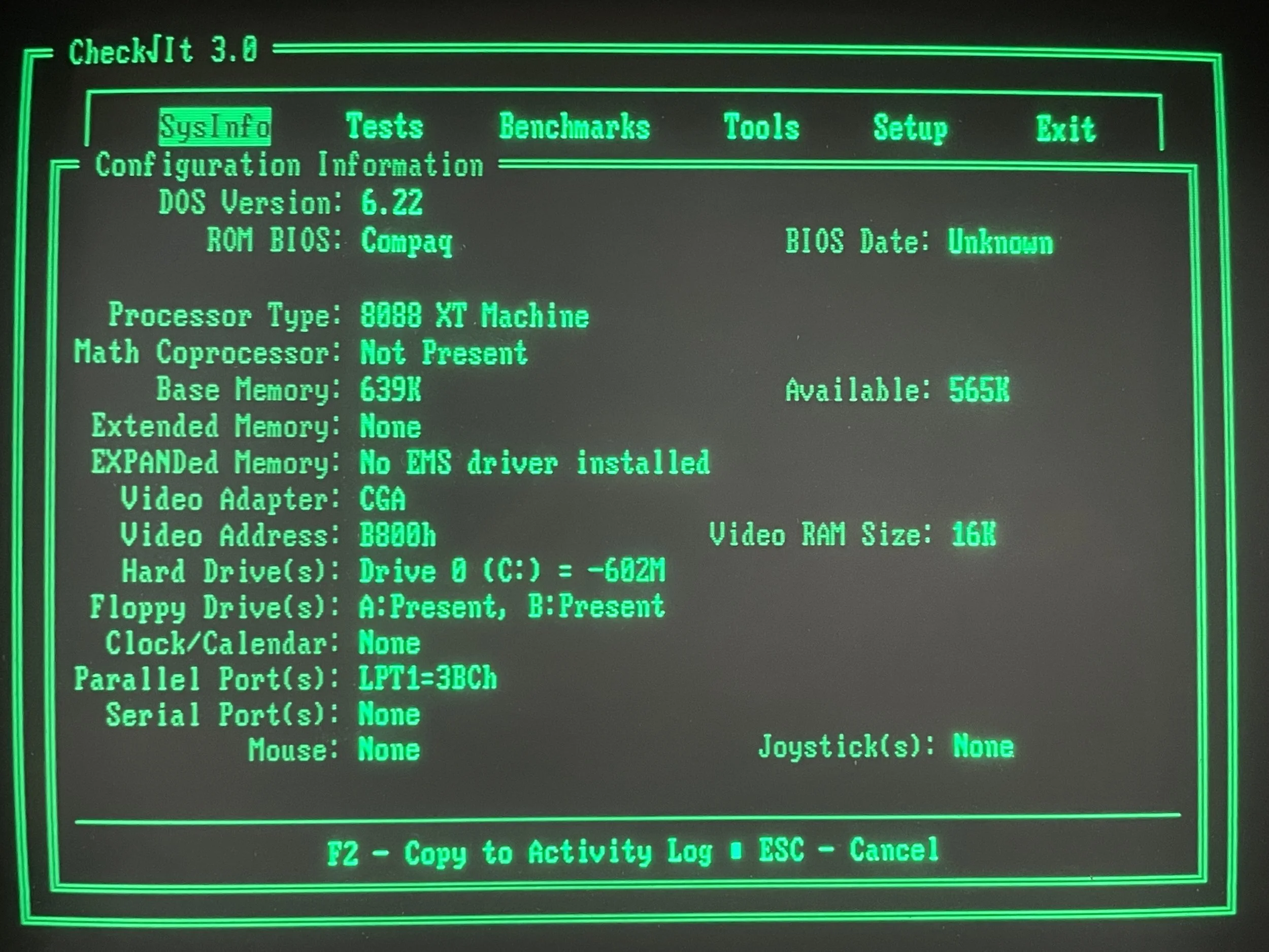 I obtained a new XTIDE Card for the CP1 from Blue Lava Systems and configured it with DOS 6.22, as with most of my DOS machines (except the PCjr, which runs a modified DOS 5.0).