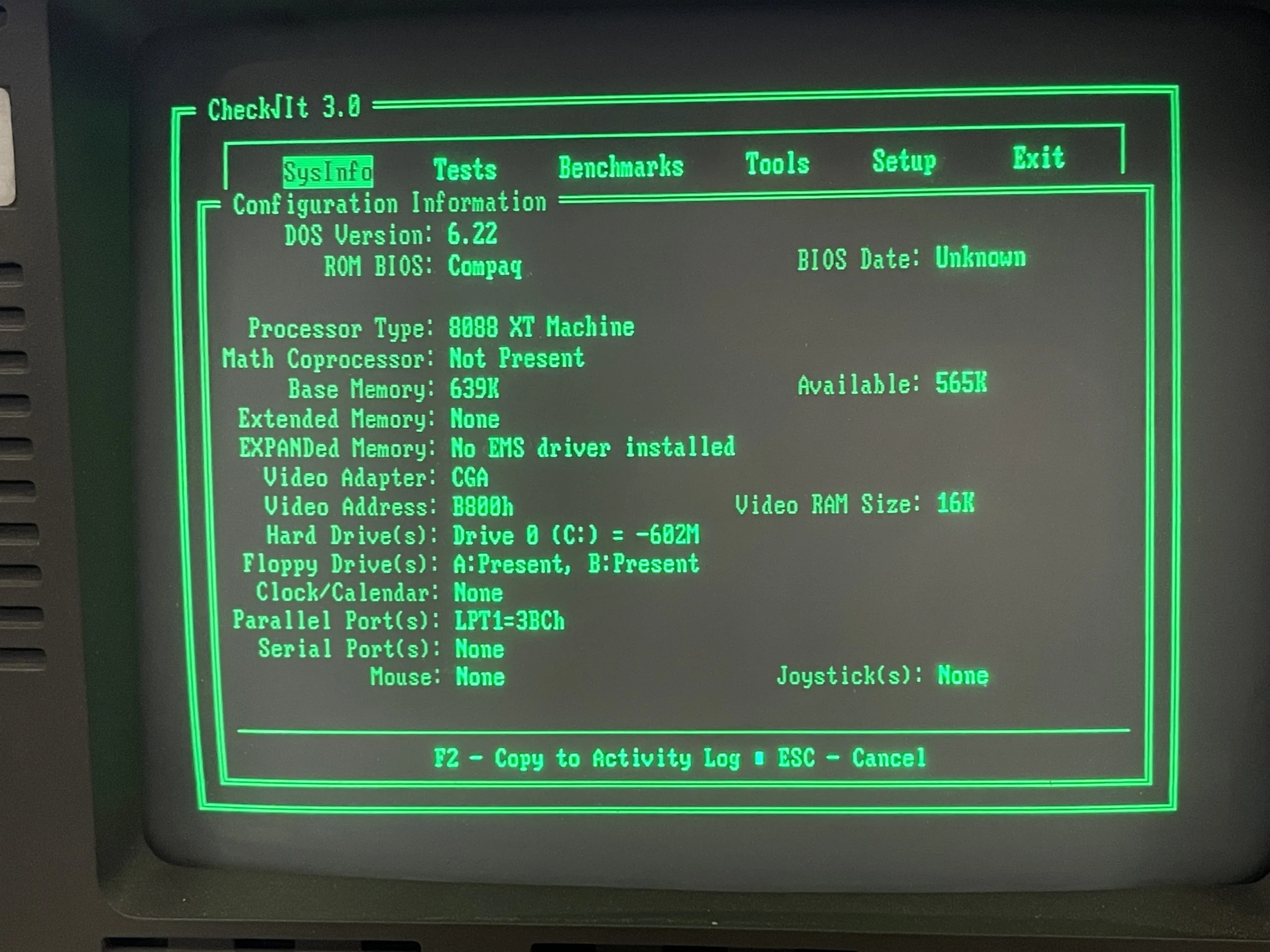 The CRT was crisp and worked great; both floppy drives worked fine. In short, the electronics were solid. Compaq did a great job on this computer as they probably had to "kill the king" (IBM) or not survive past their first computer.