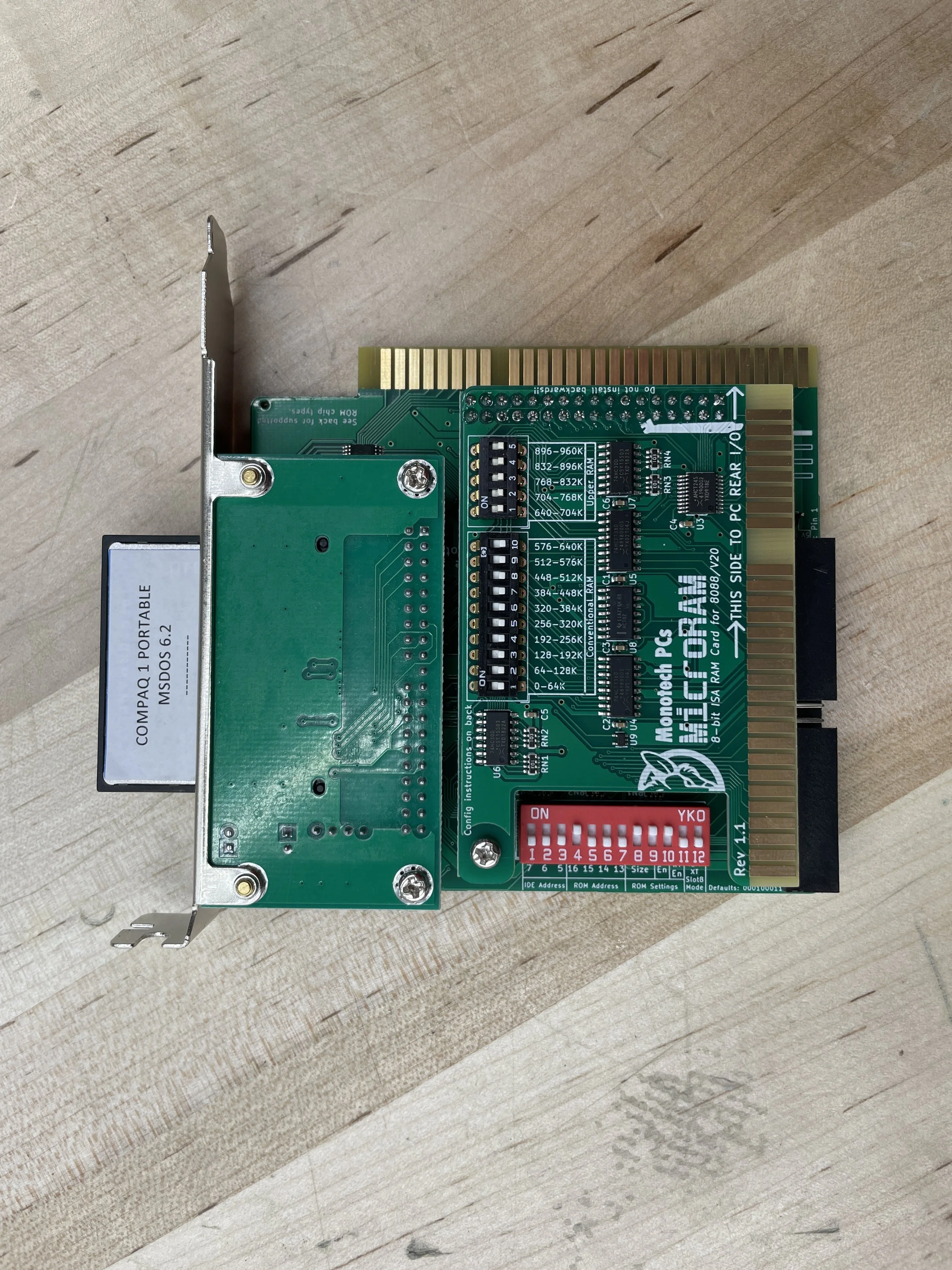 These are great devices as you can plug the flashcard into your Mac or PC and drag and drop software onto them. I put my staples on the drive, including Turbo C 2.0, Turbo Pascal, and other utilities. The card plugs into any 8bit ISA slot. As this computer only has 8bit ISA slots, all went well.